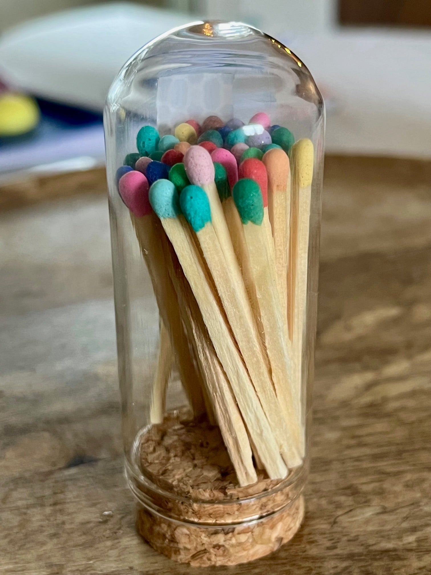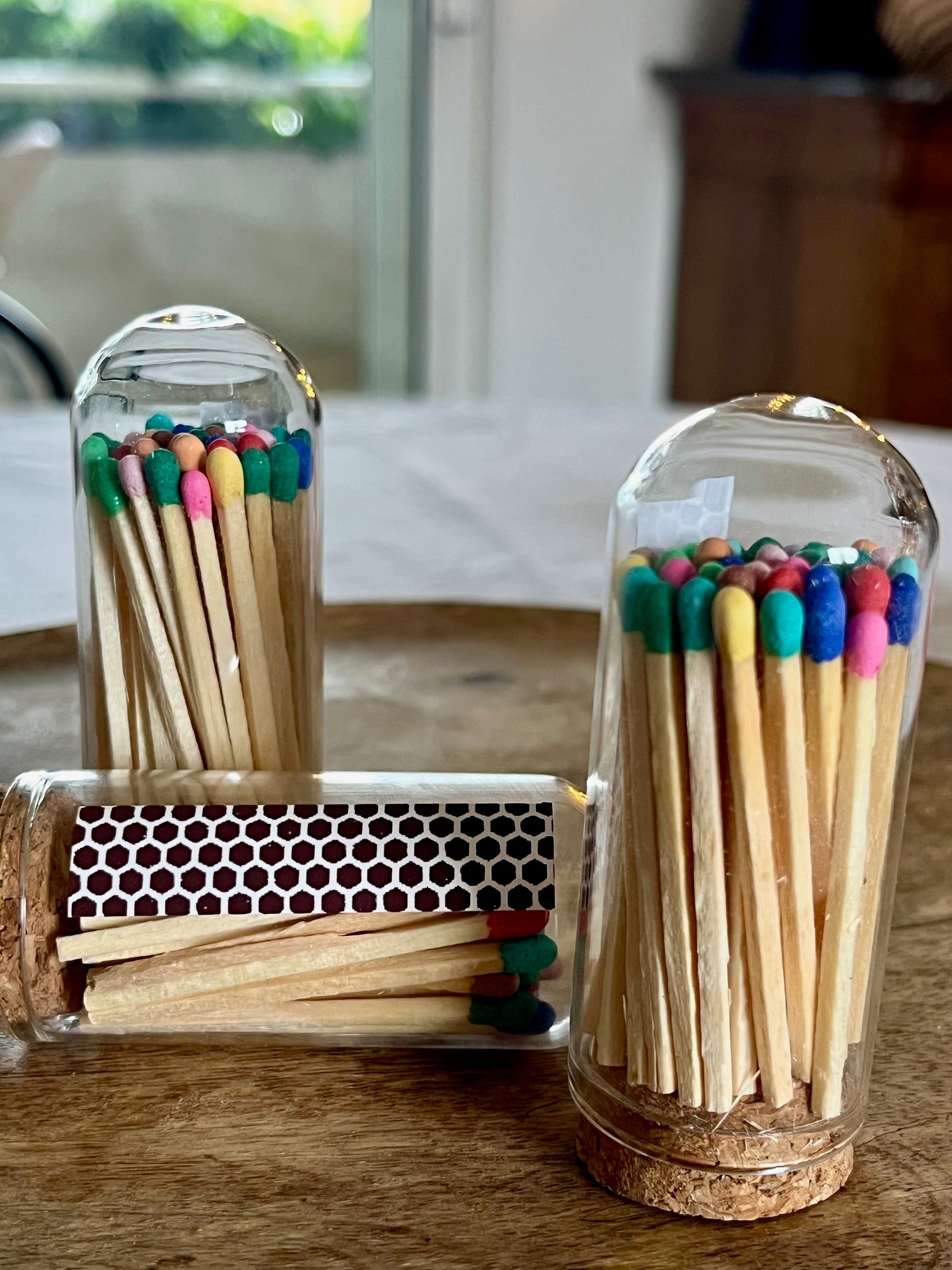 Comme un écrin, ces petites allumettes sont proposées sous cloche pour arborer votre salon ou table de fête.