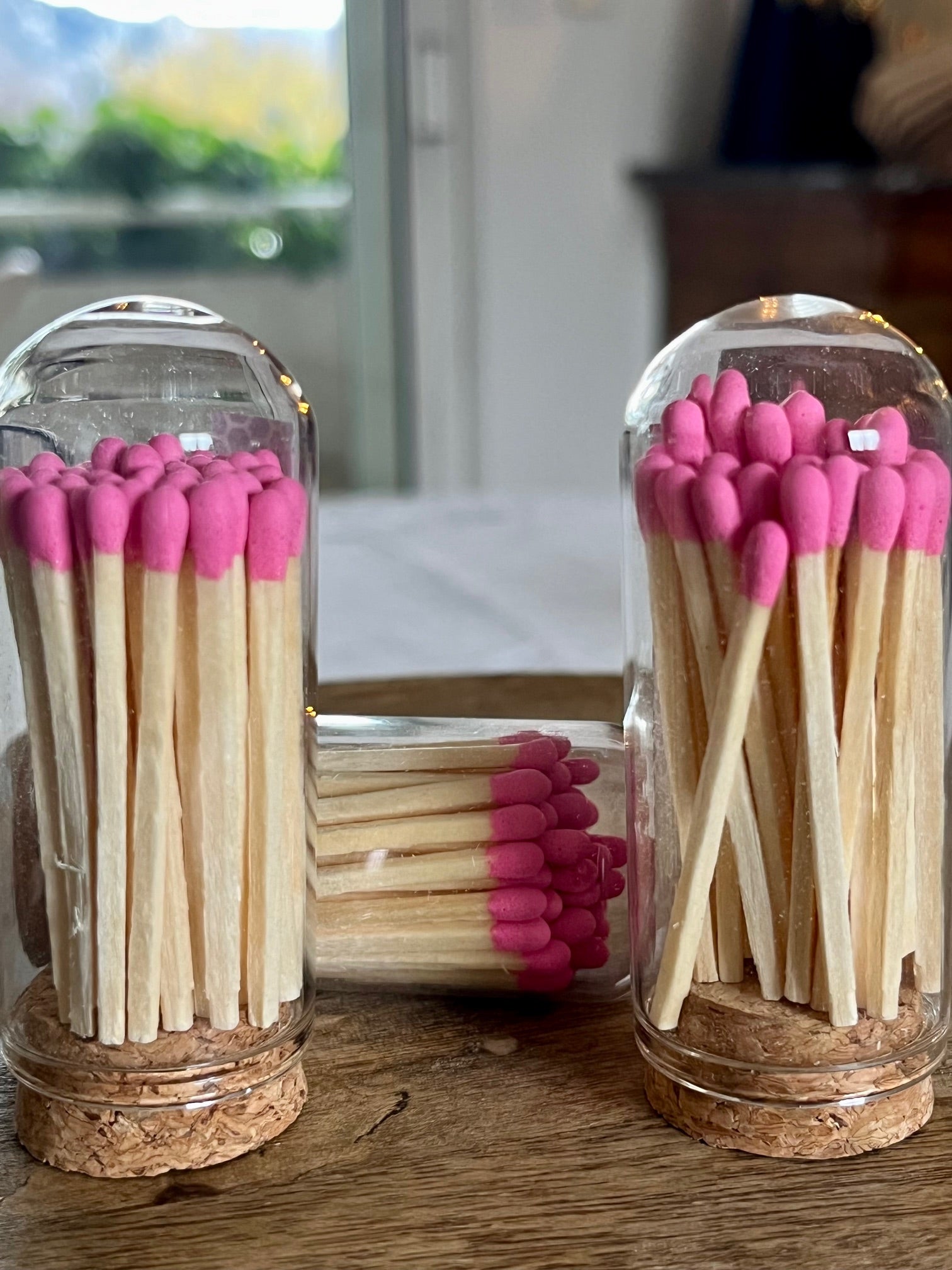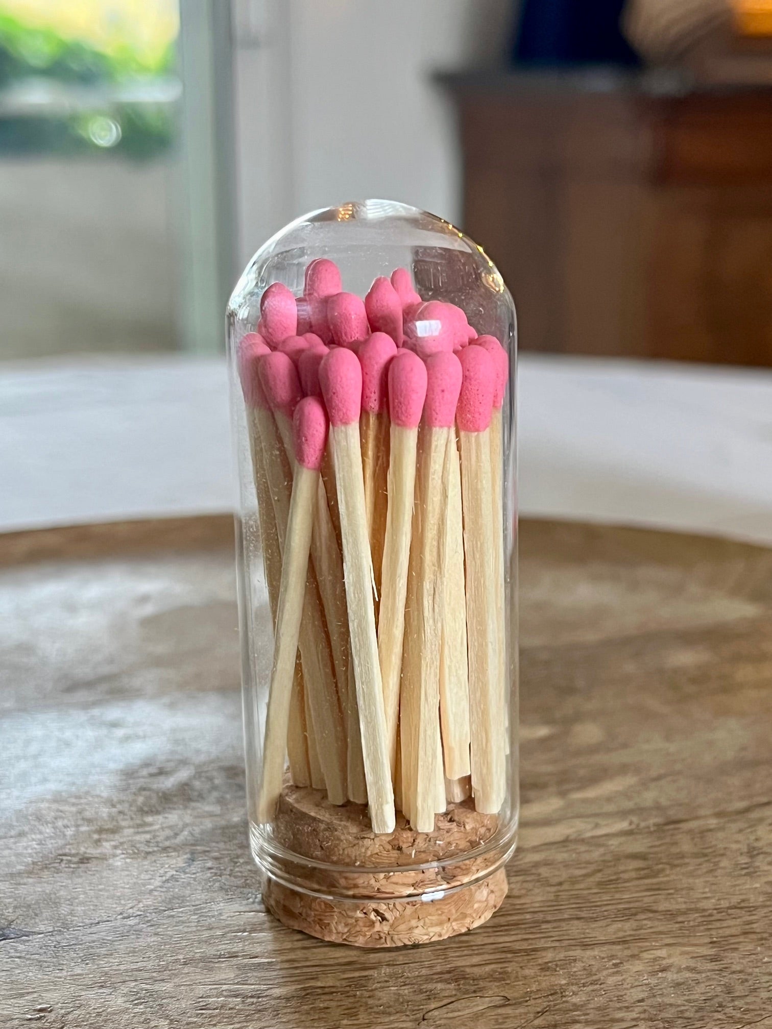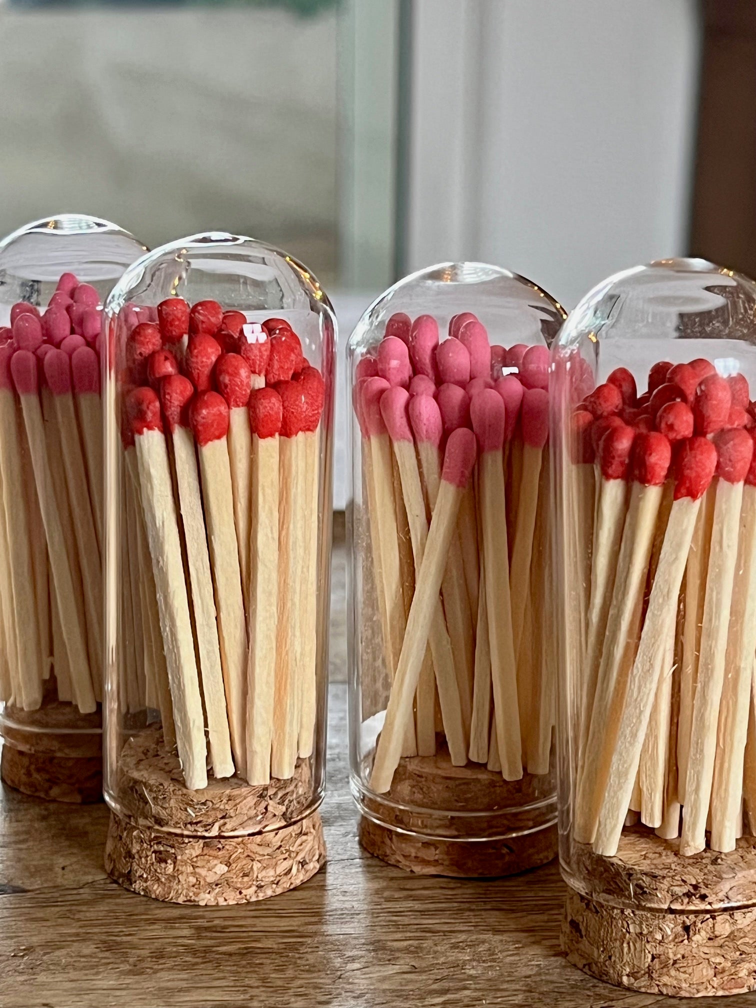 Comme un écrin, ces petites allumettes sont proposées sous cloche pour arborer votre salon ou table de fête.