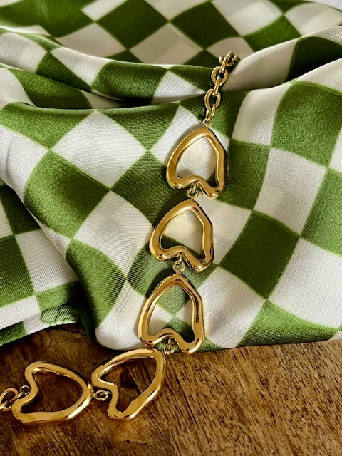 Bracelet doré orné de coeurs "imparfaits".