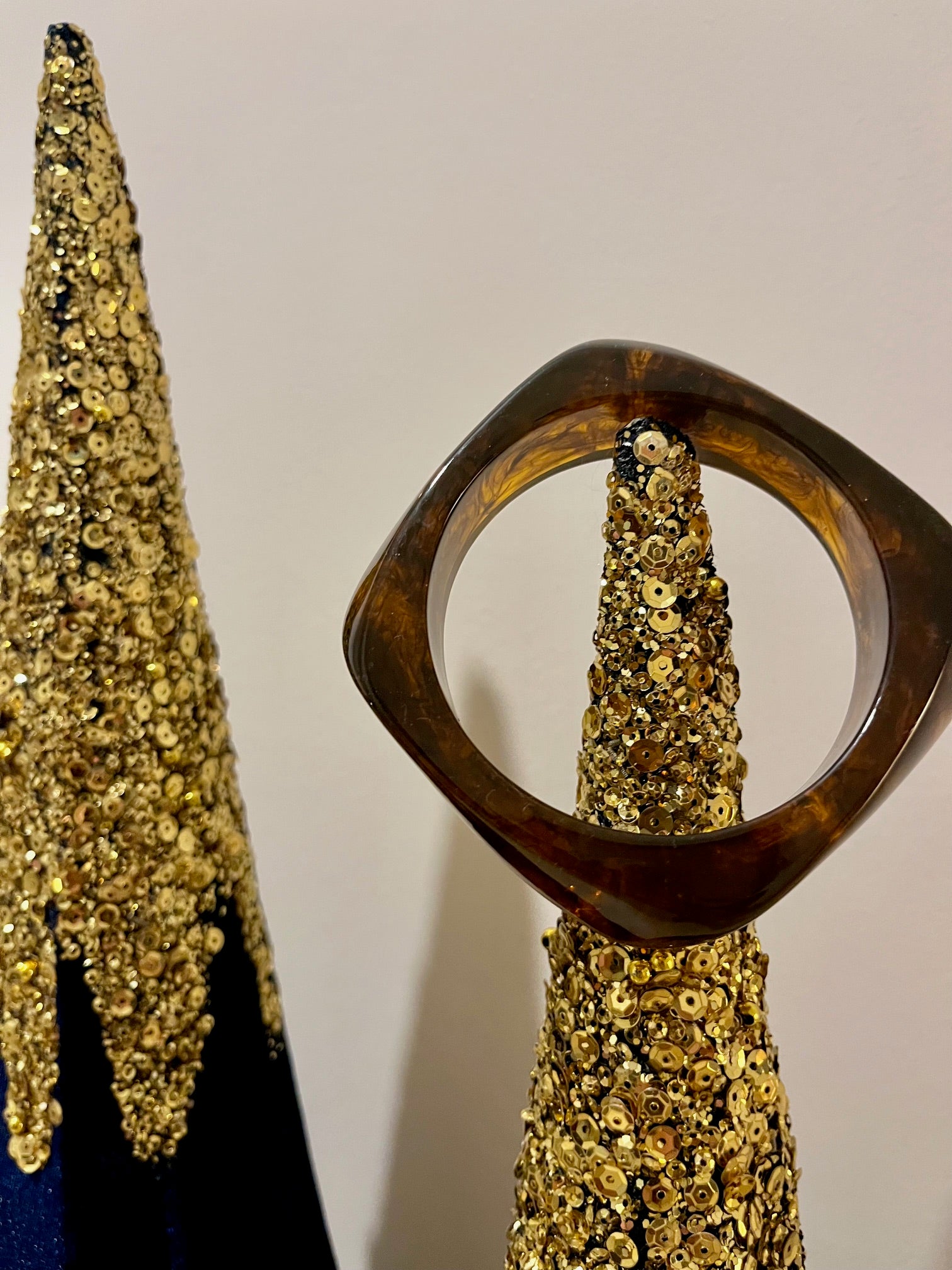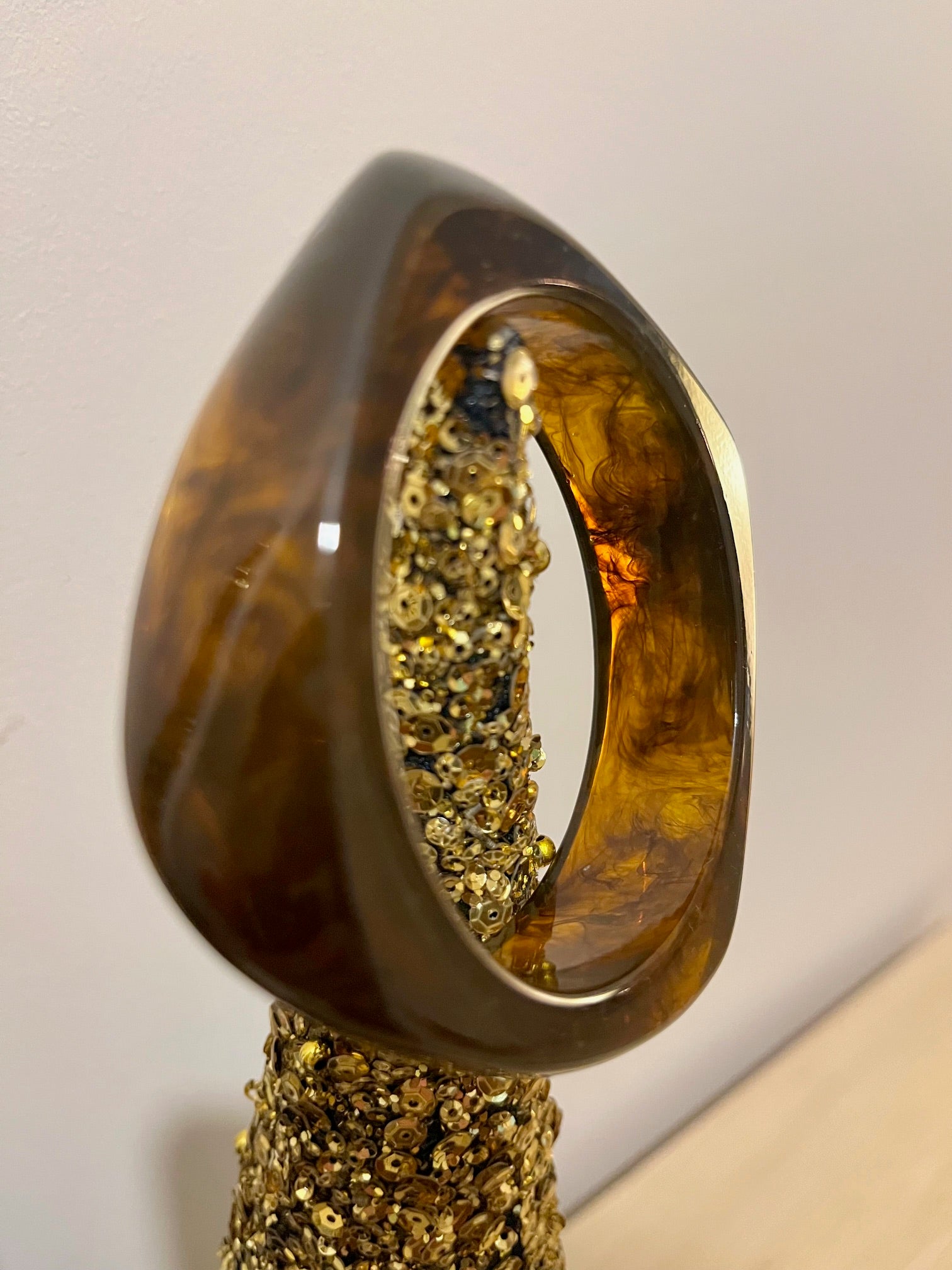 Bracelet jonc en résine - design marron foncé - forme carrée arrondie.