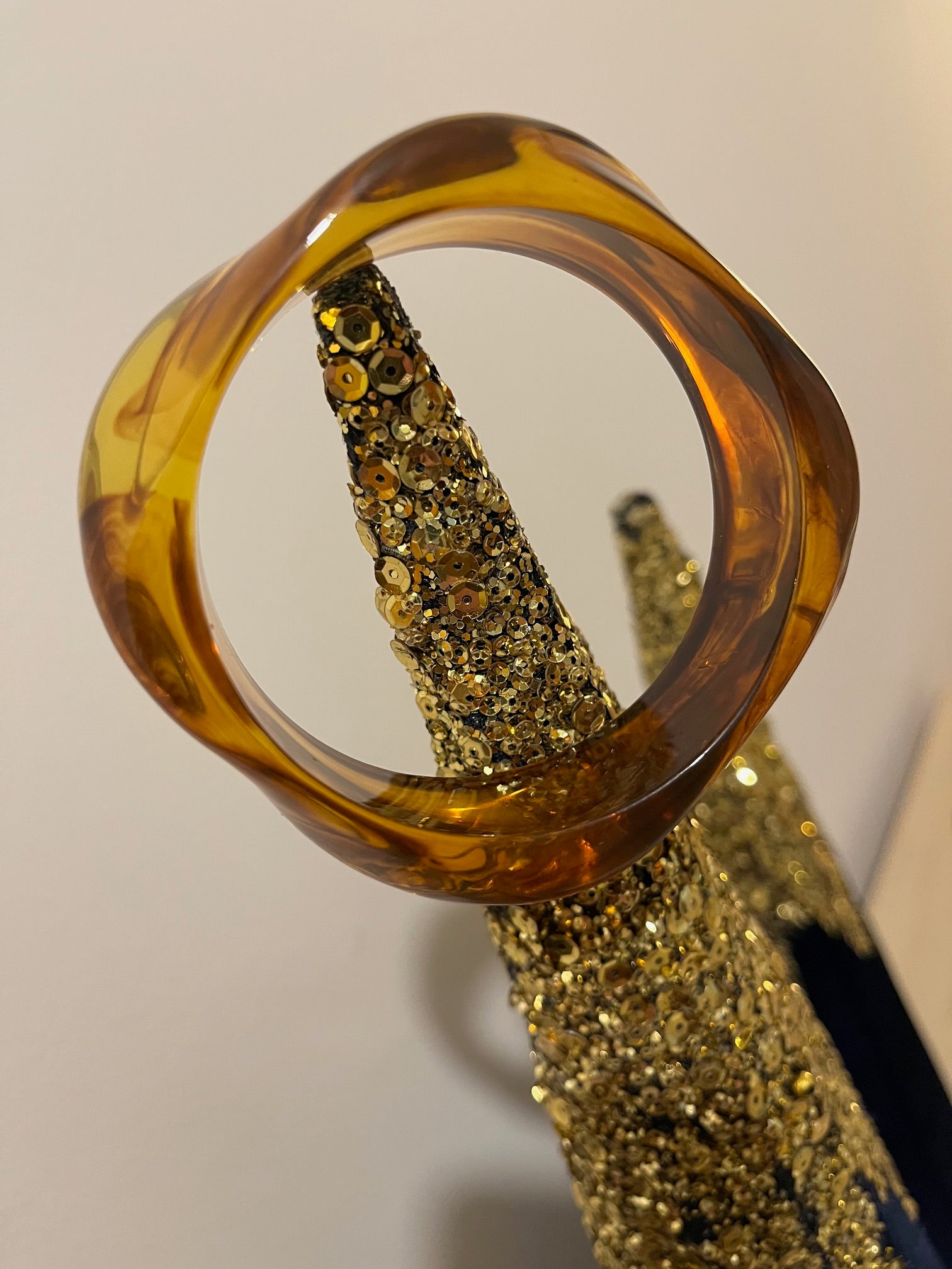 Bracelet jonc en résine - design ambre - forme vague.