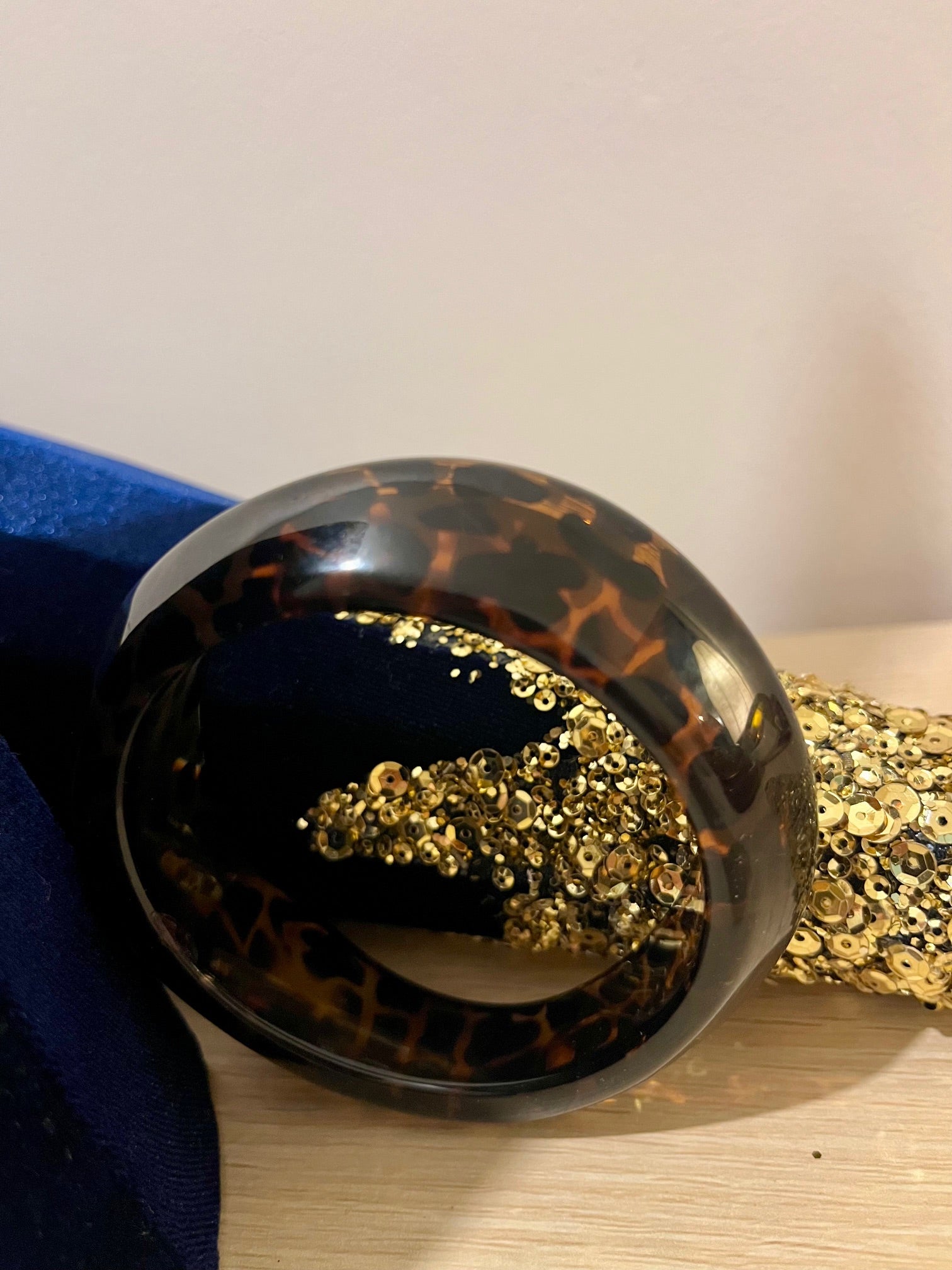 Bracelet jonc en résine - design léopard - forme vague.