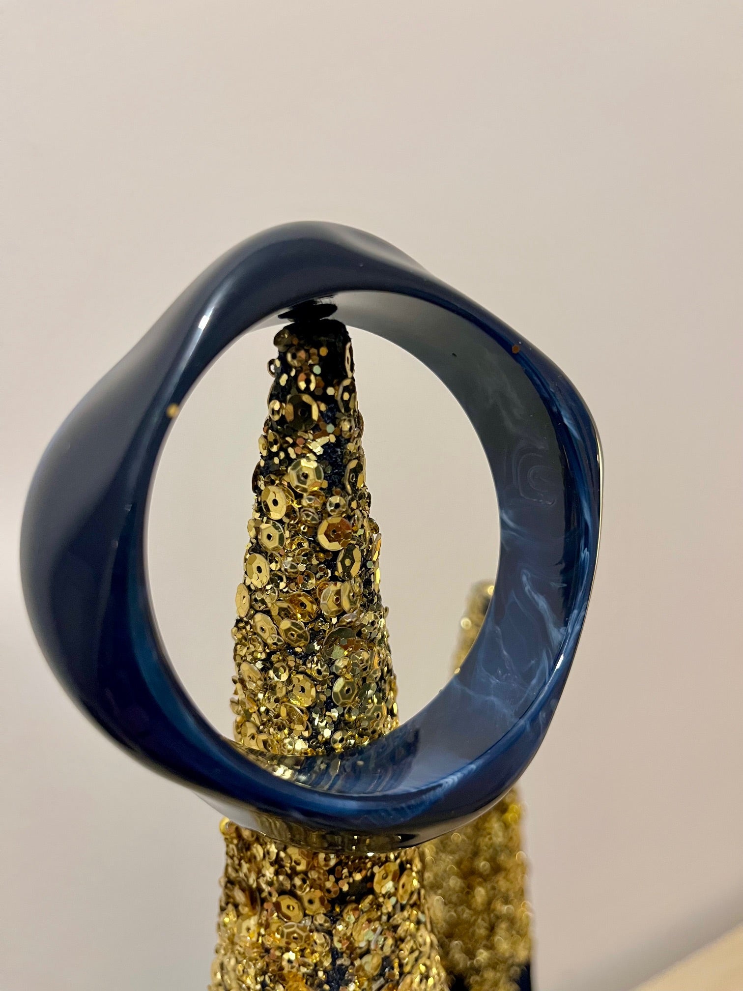 Bracelet jonc en résine - design bleu et blanc - forme vague.