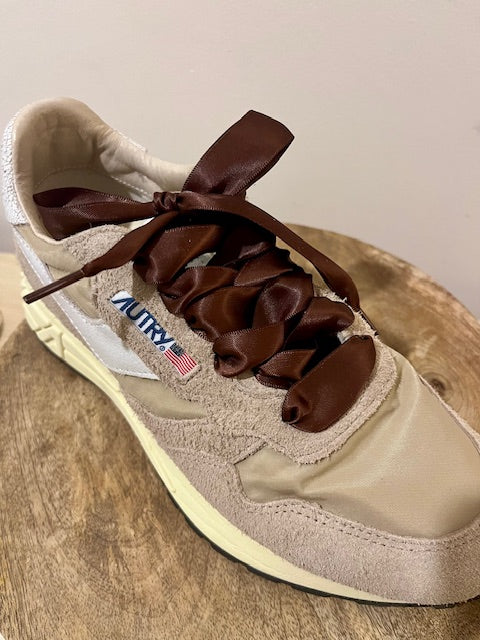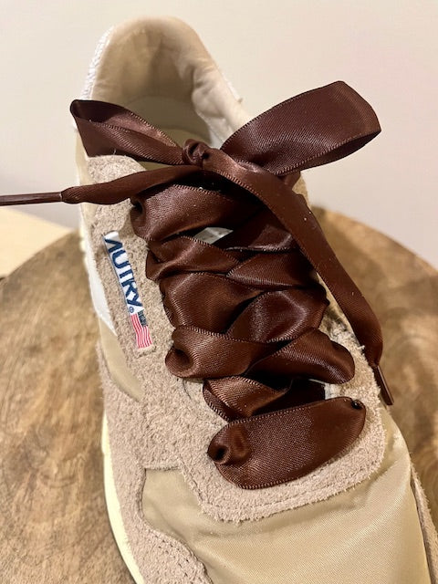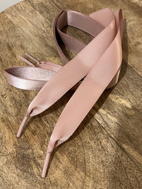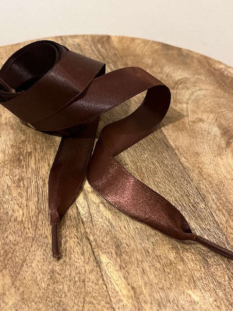 Paire de lacets satinés marron ou vieux rose.