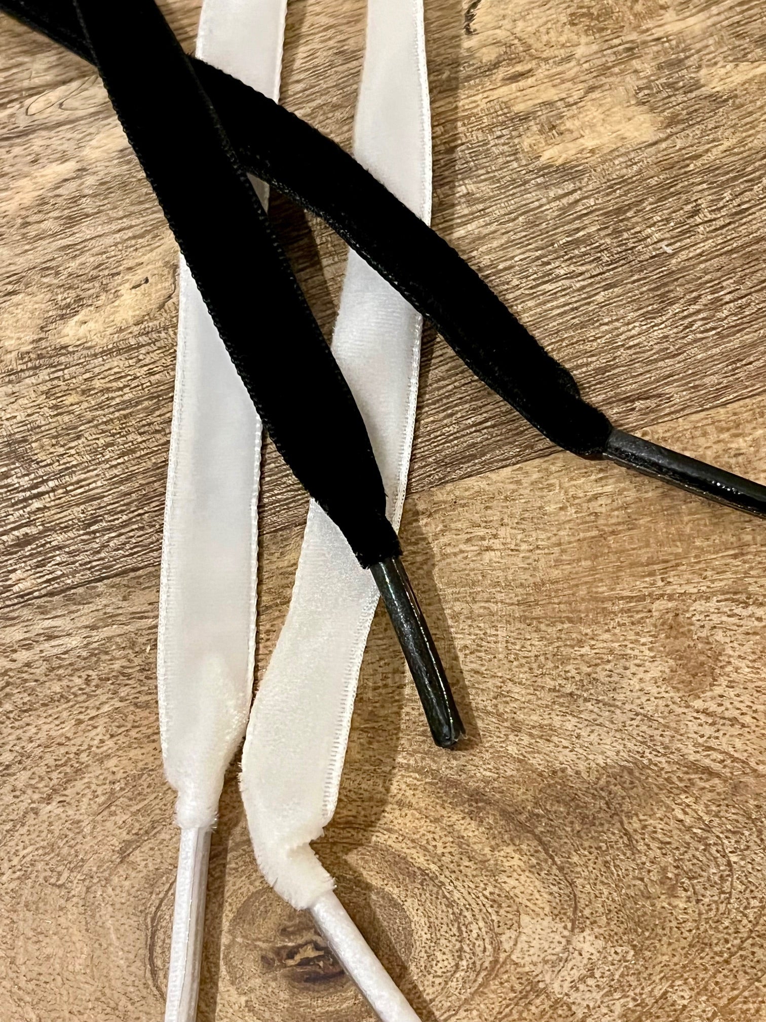 Paire de lacets velours noirs ou blancs.