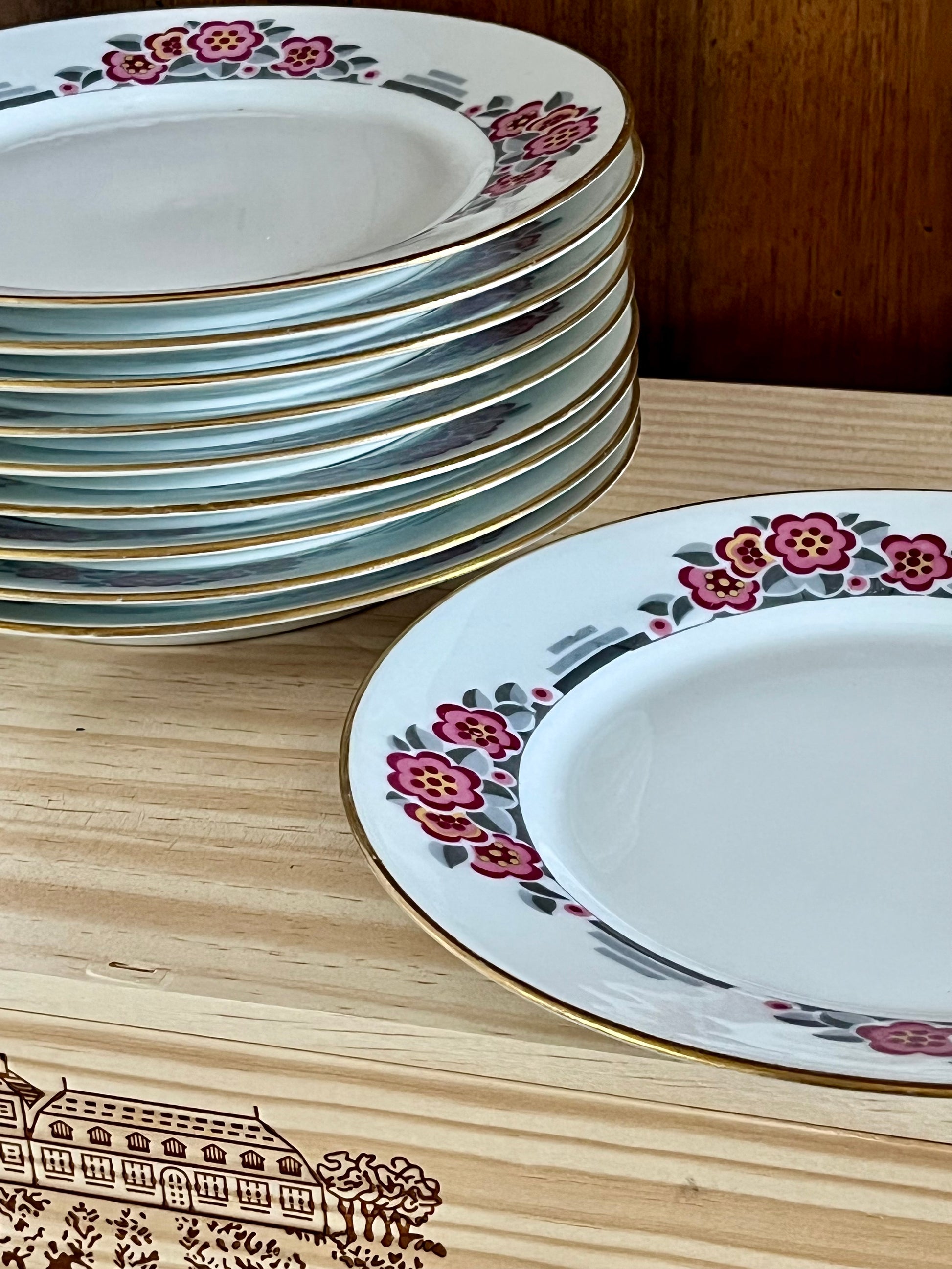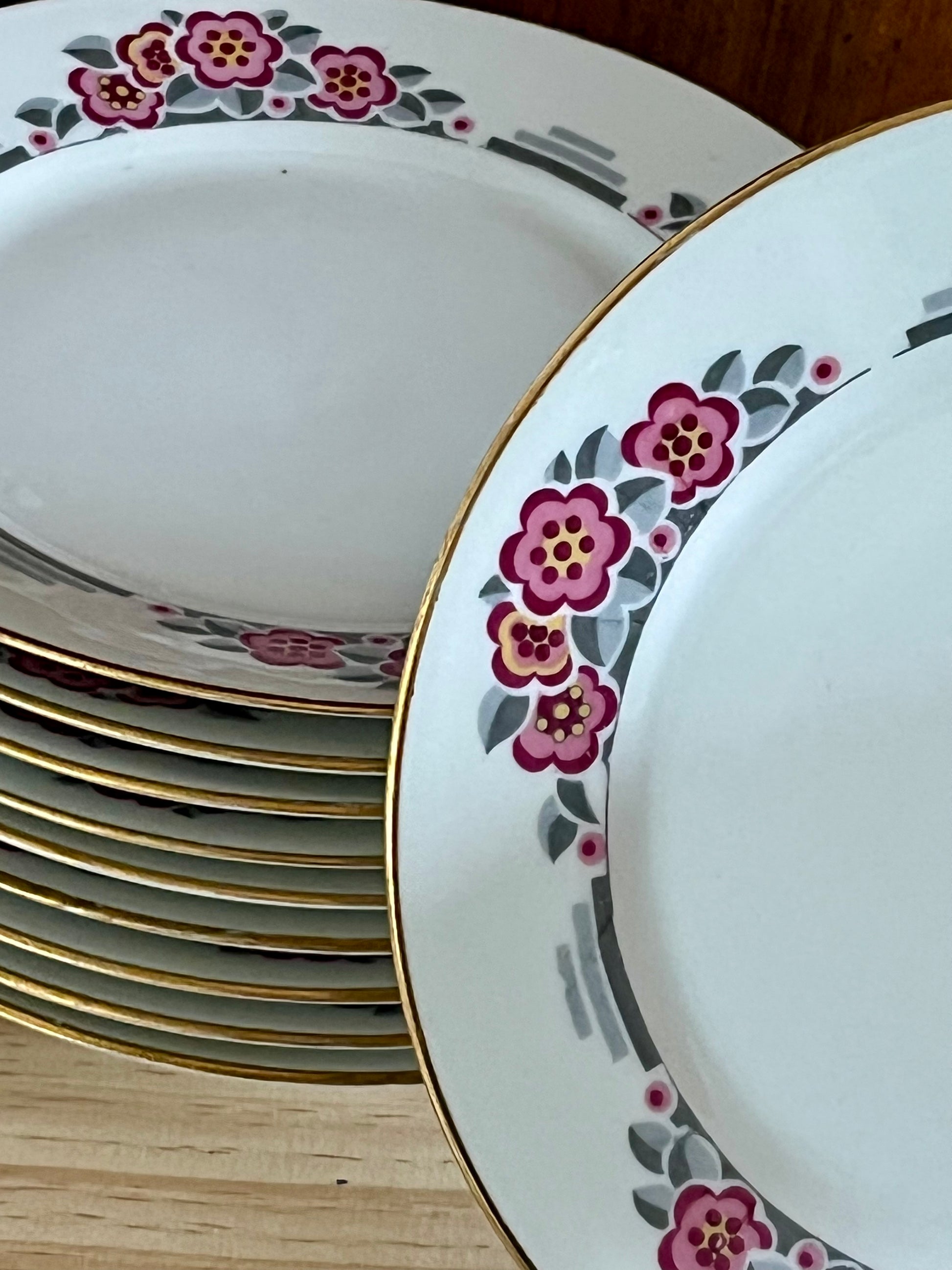 Lot de 10 assiettes à dessert en porcelaine de Limoges.