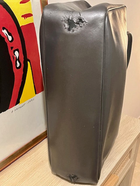 Longchamp gris irisé en état d'usure.
